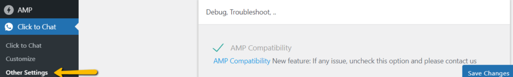 “Click to Chat” → “Other Settings” – “Debug ,Troubleshoot” – “AMP Compatibility“