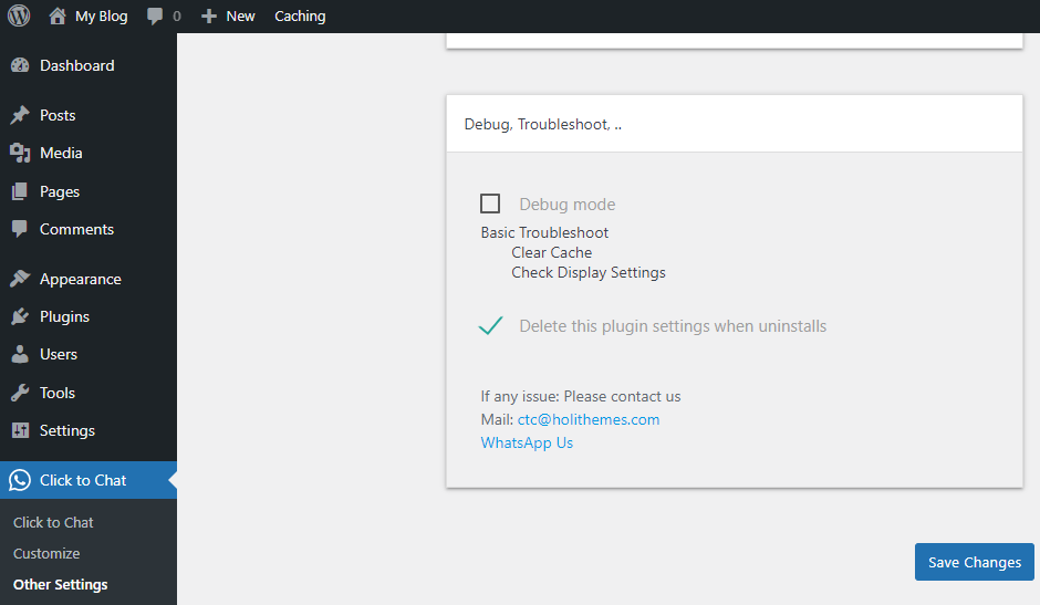 The Click to Chat plugin provides an option to automatically delete all plugin settings upon uninstallation. This is helpful when you want a clean removal of the plugin without retaining any previously saved data.
