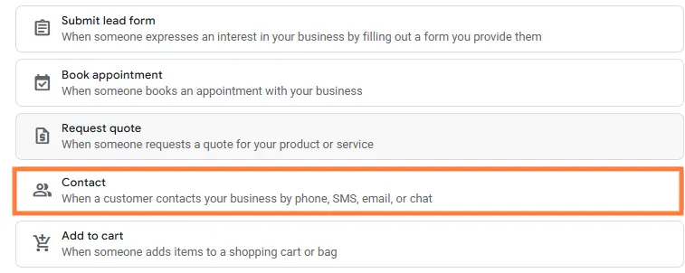 • Under Conversion Category, choose Contact.