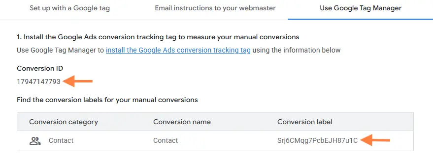 Get Conversion ID and Label (Using Google Tag Manager Tab)