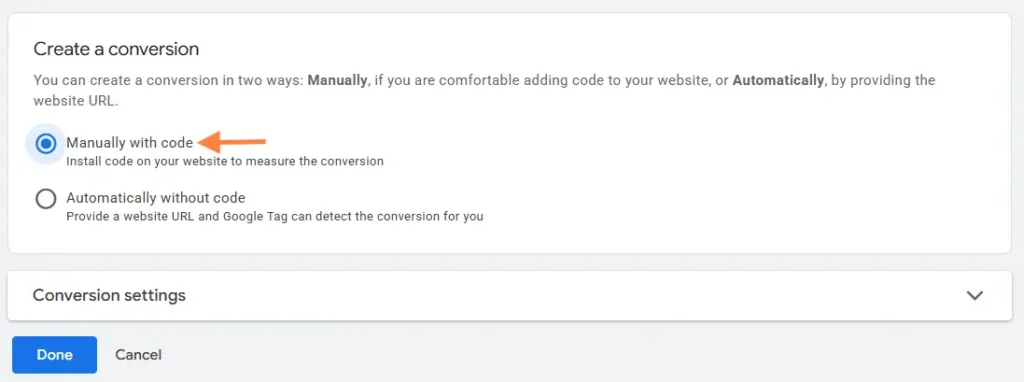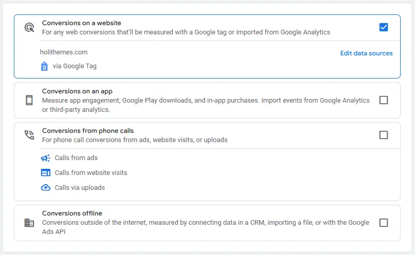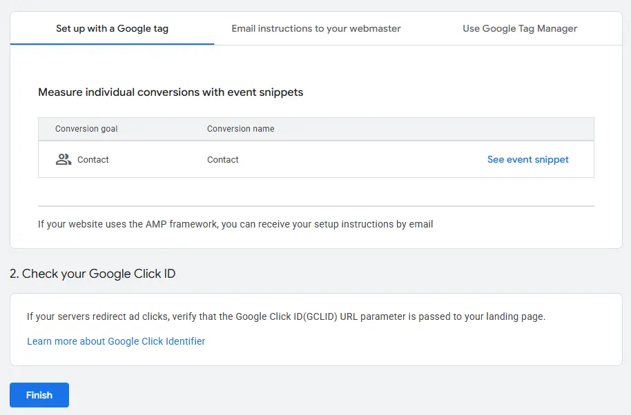 Note: Ensure we have the Global Site Tag (gtag.js) installed on our website for conversions to be tracked properly.