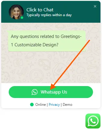 No Greetings Dialog: No greeting message will be displayed. Only the WhatsApp button and its Call to Action will appear on the post/page.
