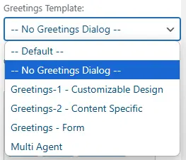 Default: Selects the greetings set globally at Click to Chat → Greetings. The page/post will use the same template configured in the plugin’s main settings.