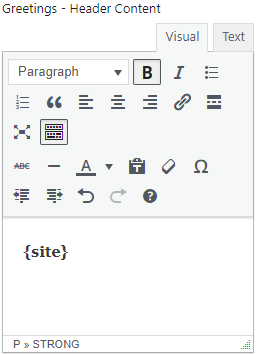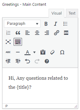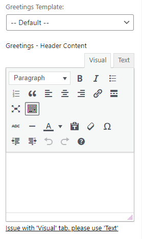 Once enabled, additional customization options, including the Greetings Template dropdown and text editors, will appear for that specific post or page.