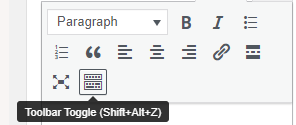 For additional formatting options, click the Toolbar Toggle icon in the text editor to reveal more editing tools.