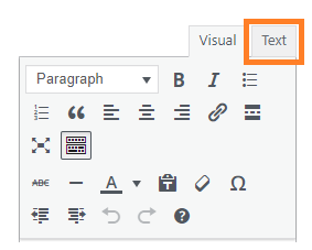 Each content area offers a visual editor for easy editing or a Text mode for adding custom HTML code if needed.