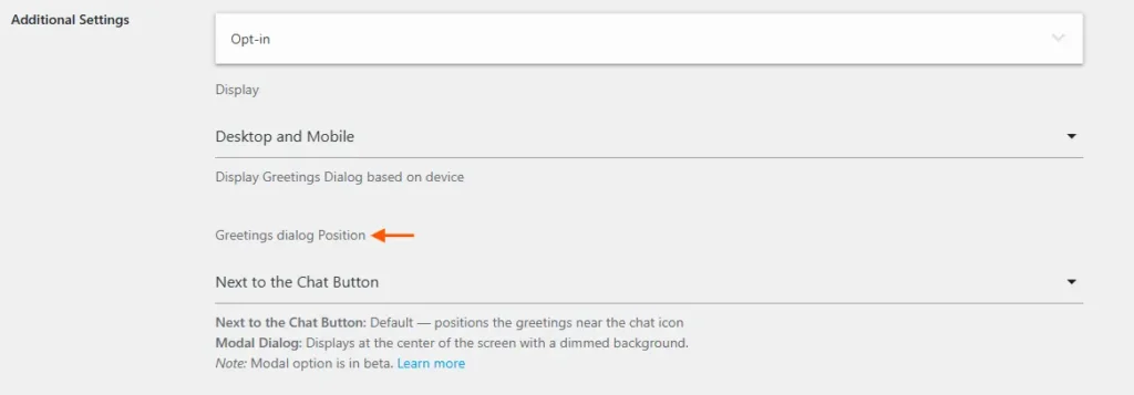 Both options are designed to support great user experience. Whether we want a subtle nudge or a clear message upfront, the Greeting Dialog Position gives us the flexibility to do it our way. Adjust it to match our brand and guide our users naturally into conversation.