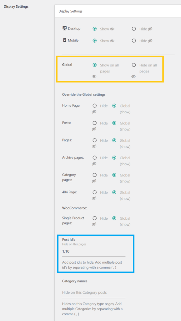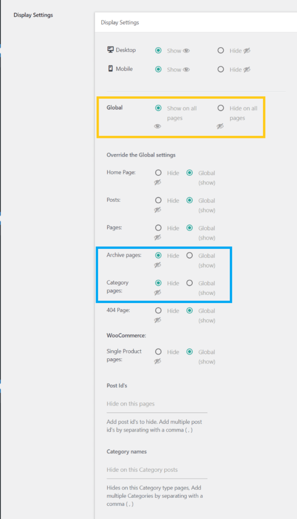 - Add those post IDs to the “ID’s list to hide” field in override settings.