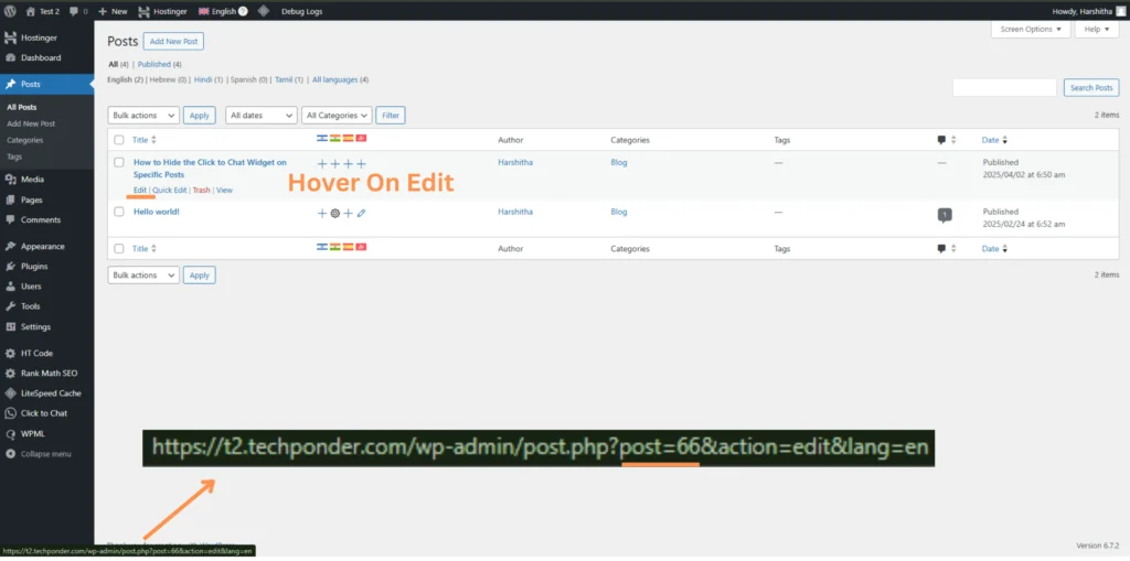 - Hover over the title of the post or on edit.