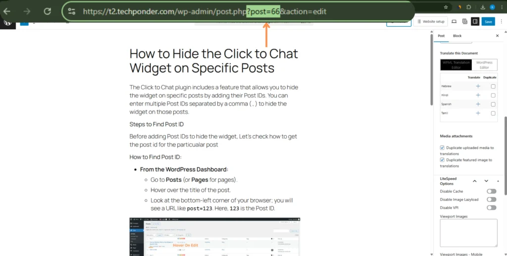 ?post=66. The number is our Post ID.