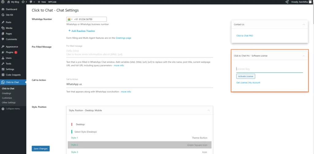 We can proceed with either of the two steps to obtain the License Key for activating the Click to Chat Pro plugin.