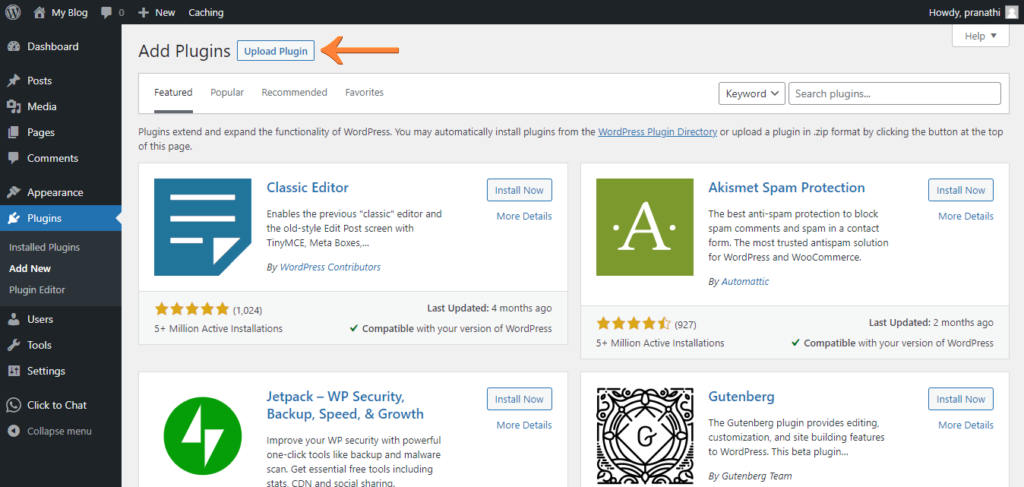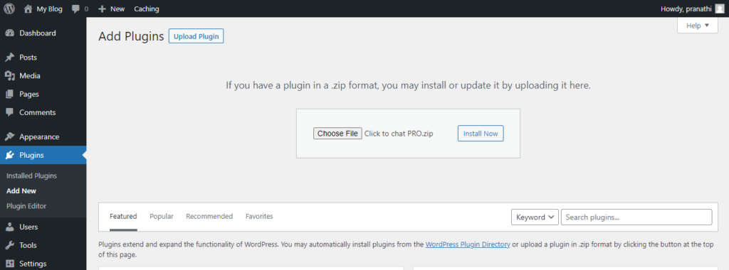 - From the WordPress admin Dashboard navigate to Plugins -> Add New