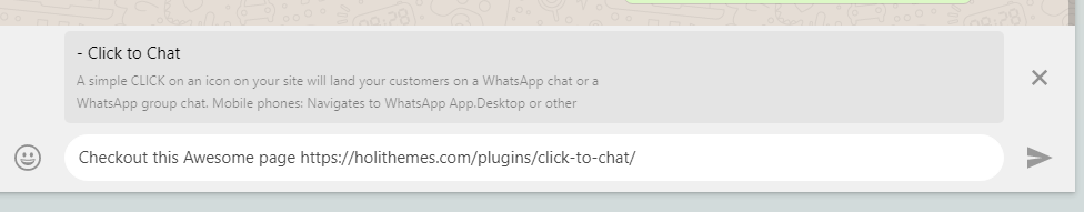 Add placeholders URL, TITLE in the Share Text to make it easier for the visitors to share it on the WhatsApp