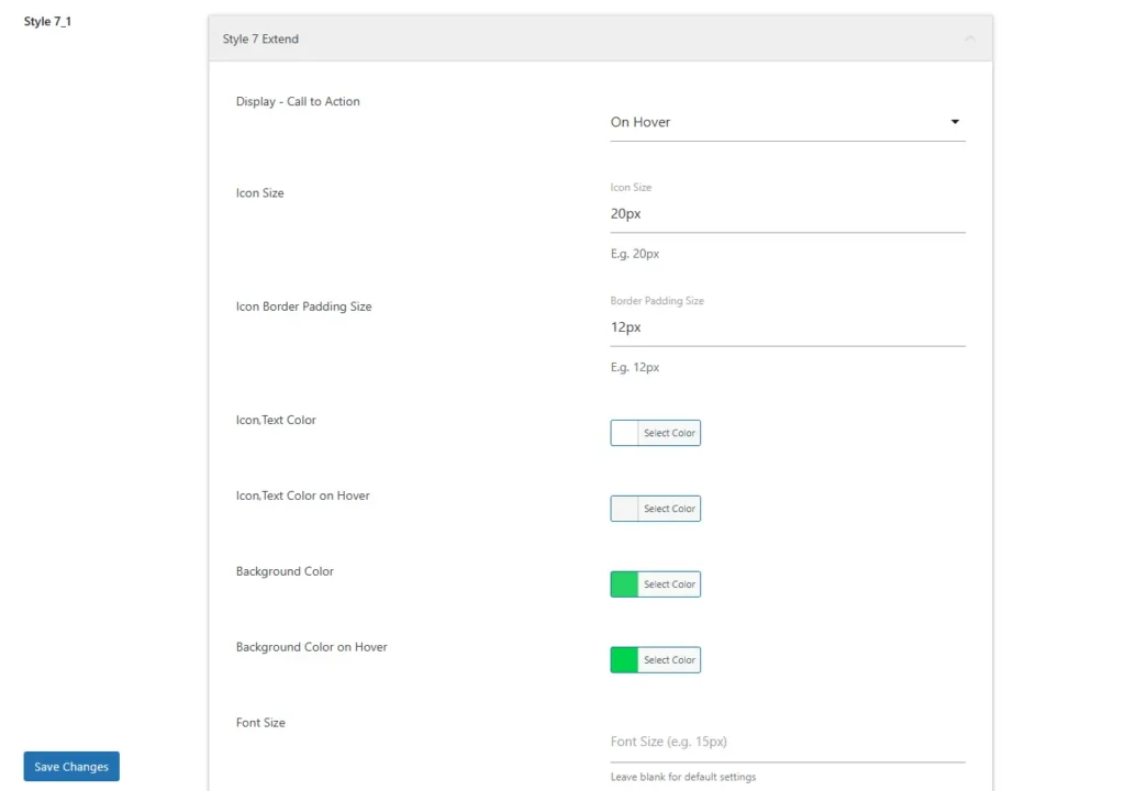 - Icon Text Color on Hover: Set a different color for the icon’s text when hovered over.