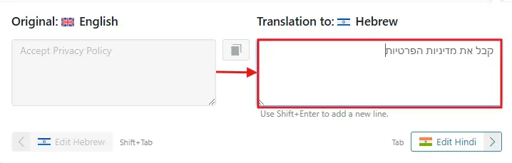 A dialog box will appear, allowing us to enter the translated text for the selected language.
