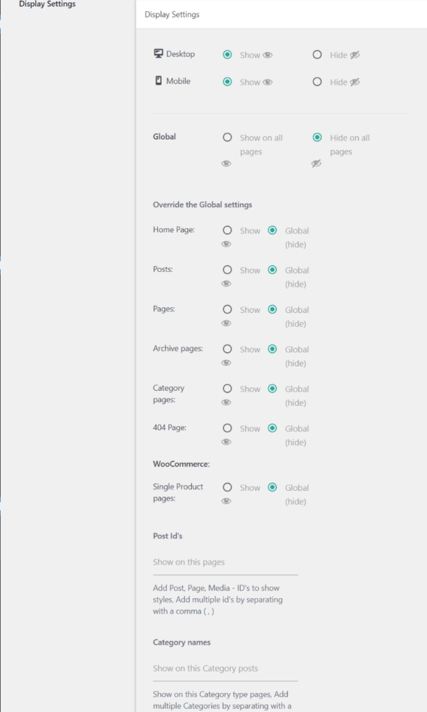 Instead of Checkbox’s now radio buttons are added for display settings. To avoid confusion, Show and Hide both options will appear now. It is very to select the options whatever you want.