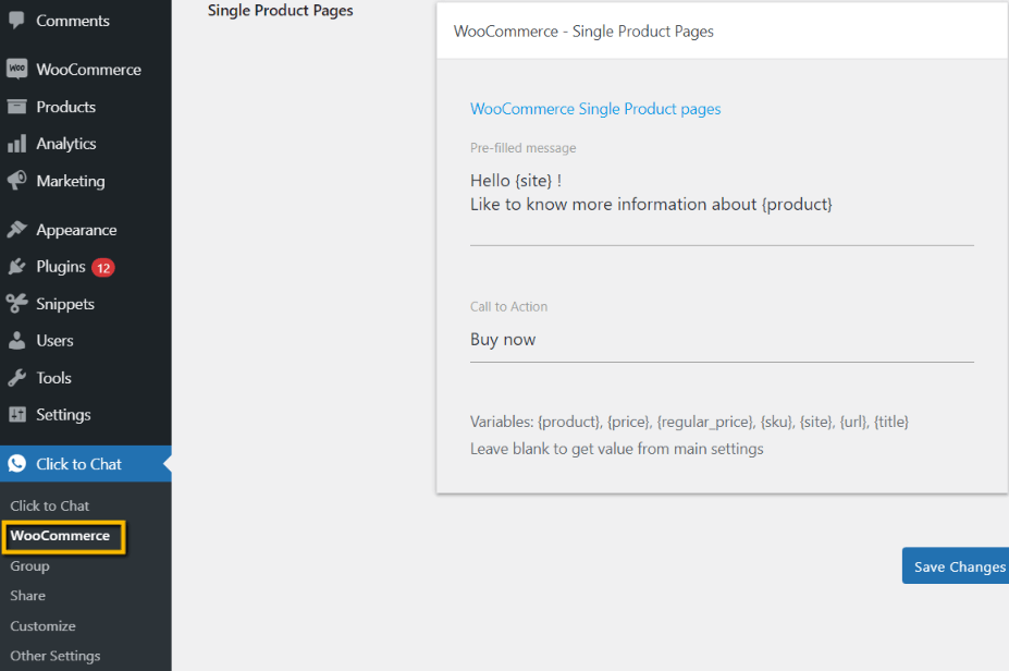 Added WooCommerce single-product page separately in the Click to Chat Plugin.