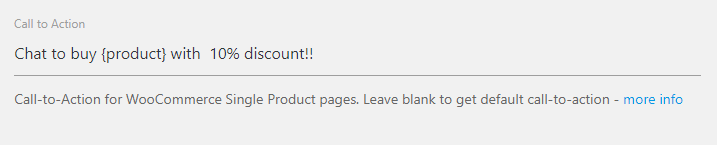 A Call-to-Action is the text displayed next to or on the WhatsApp icon/button. It encourages visitors to engage in a conversation.